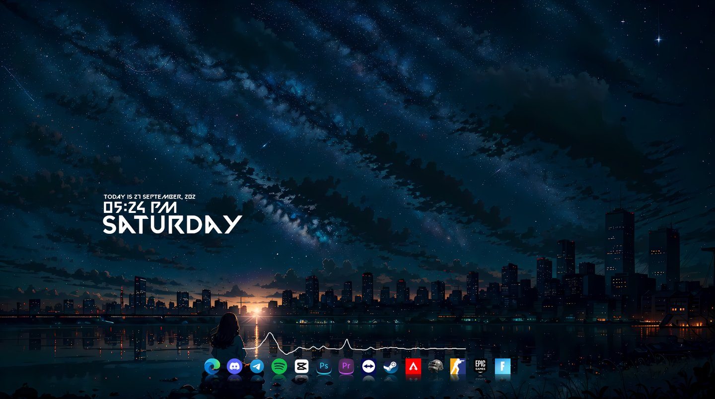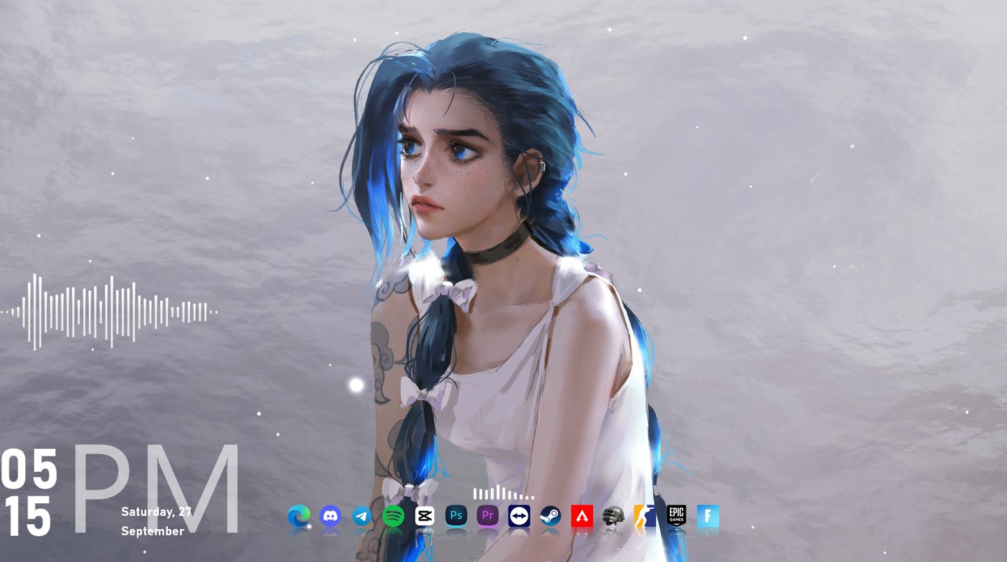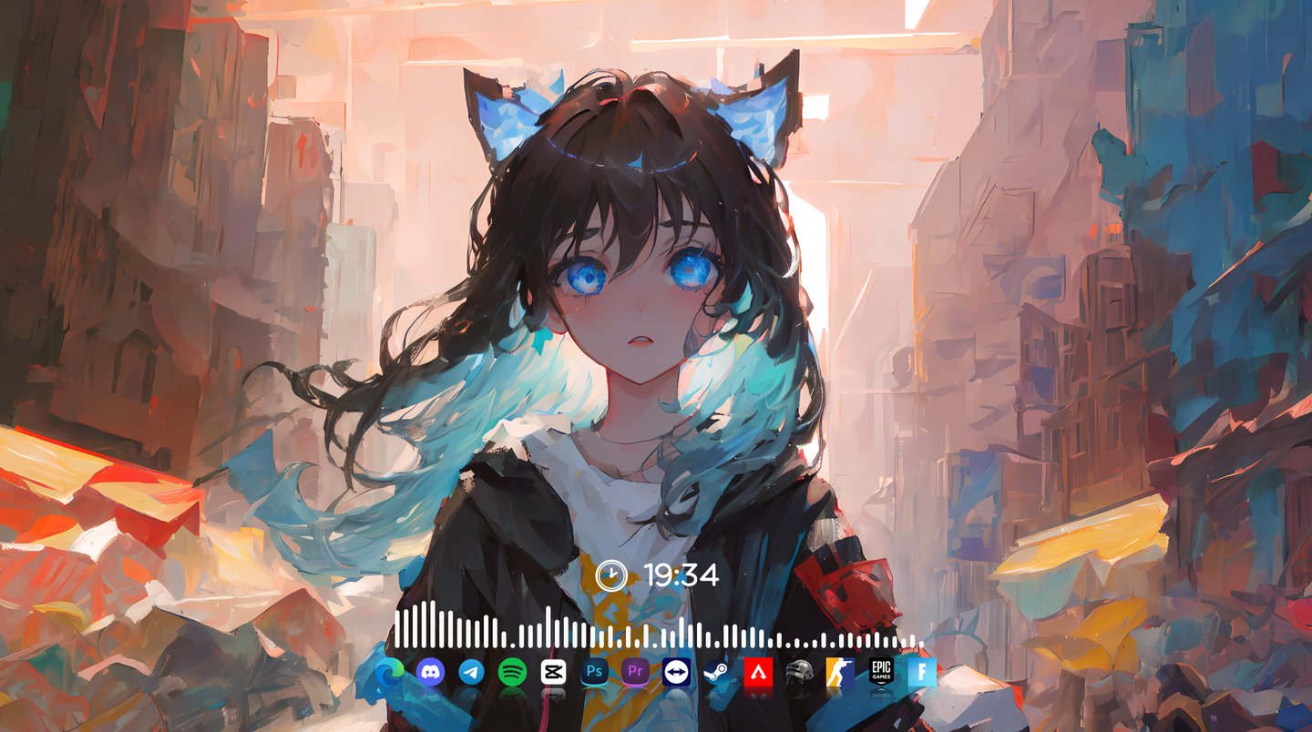 1. All previews show differences between Rainmeter components (e.g., time/clock widgets and audio visualizer bars) — not wallpapers.